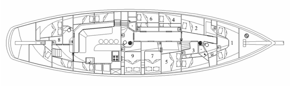 Cabin 1 : $3600 per bed, special layout, see diagram, This is usually the first room filled on these voyages.