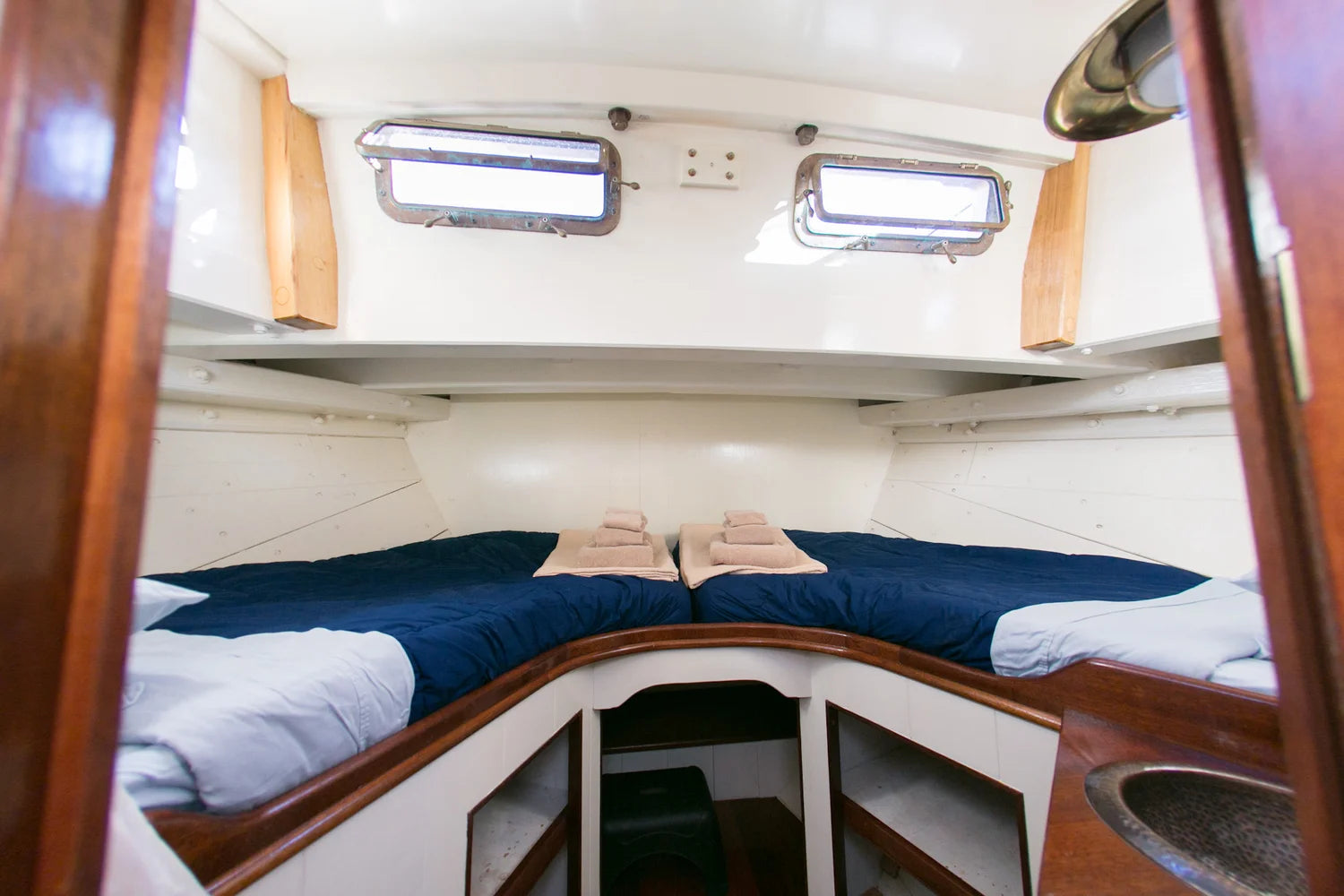 *Any queen cabin may be upgraded to solo for a 25% reduction of second berth. Cost= $6025. It might be more fun to invite your partner. They would love the fresh air, sailing, food and company.